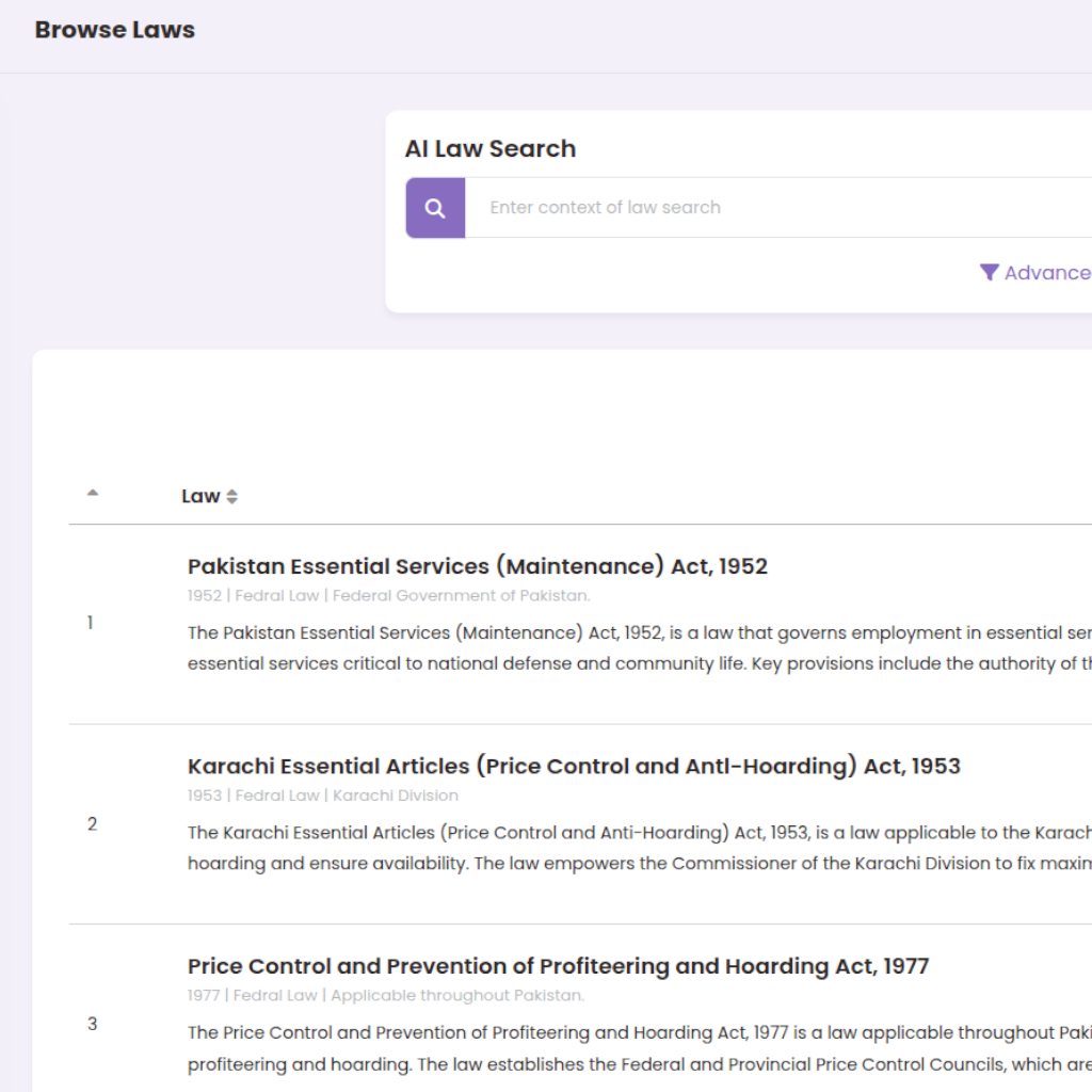 - Comprehensive law search across statutes, provisions, and rules